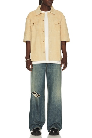 Suede Short Sleeve Camp Shirt